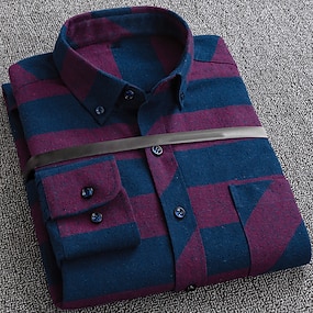 Homme Chemise Chemise boutonnée Plaid Mariage du quotidien Rouge bleu marine Bleu Chameau manche longue Col rabattu Printemps Automne Vêtement Tenue Boutons