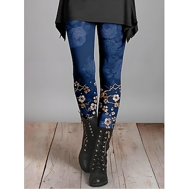 Femmes Leggings Vacances ancien Mode Longueur cheville Taille haute Fleuri Graphique Dégradé Impression Doux Respirant Élastique Occasionnel Quotidien Vacances Bleu Marron foncé Vert foncé Grise
