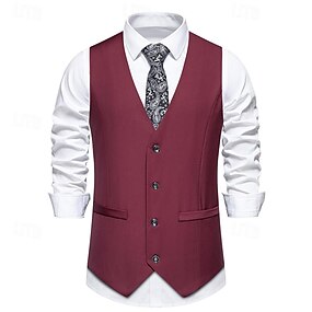 Homme Gilet Gilet de costume Mariage Entreprise Casual Fête de Mariage 1920s Casual Chic Polyester Couleur Pleine Boutonnage Simple Col de Chemise Mince Noir Rouge Gris Clair Gilet