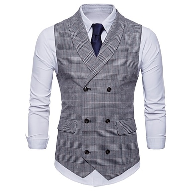 Homme Gilet Gilet de costume Mariage Travail Entreprise Vacances Grande occasion Doux Printemps Automne Polyester Plaid Col de Chemise Mince Marron Gris Clair Gris foncé Gilet