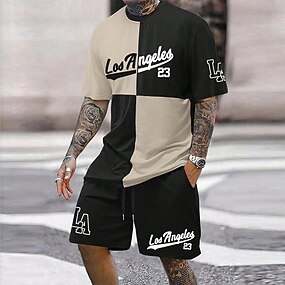 Homme Graphique Bloc de Couleur 2 pièces Ensembles de tees Ensemble short et T-shirt Tenues De T-shirts Manche Courte Col ras du cou Designer Occasionnel Confortable Extérieur Vacances Quotidien