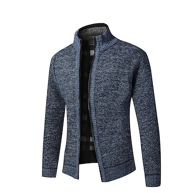Homme Pull Chandail Gilet Cardigan Pull Zippé A côtes Tricoter Imprimer Tricoté Bloc de couleur Col Mao mode Guêtres Travail Sortie Vêtement Tenue Hiver Vert Bleu de minuit M L XL