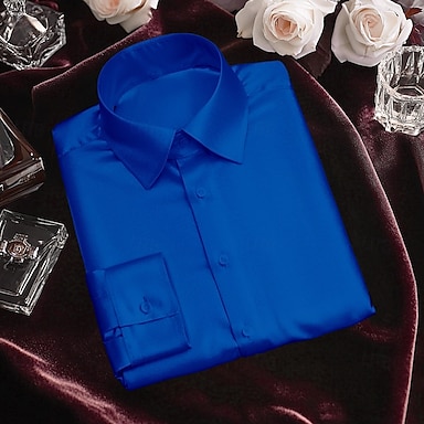 Homme Chemise Chemise en satin Chemise Décontractée Chemise Boutonnée Uni Mariage Vacances Bleu Ciel Noir Vin Bleu Roi manche longue Revers Printemps & Automne Vêtement Tenue
