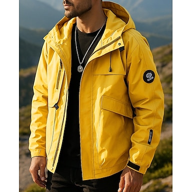 Homme Veste de randonnée imperméable Veste de pluie Coupe-vent de randonnée Été Printemps Extérieur Patchwork Imperméable Portable Séchage Rapide Antistatique Vêtements d'extérieur Imperméable Trench