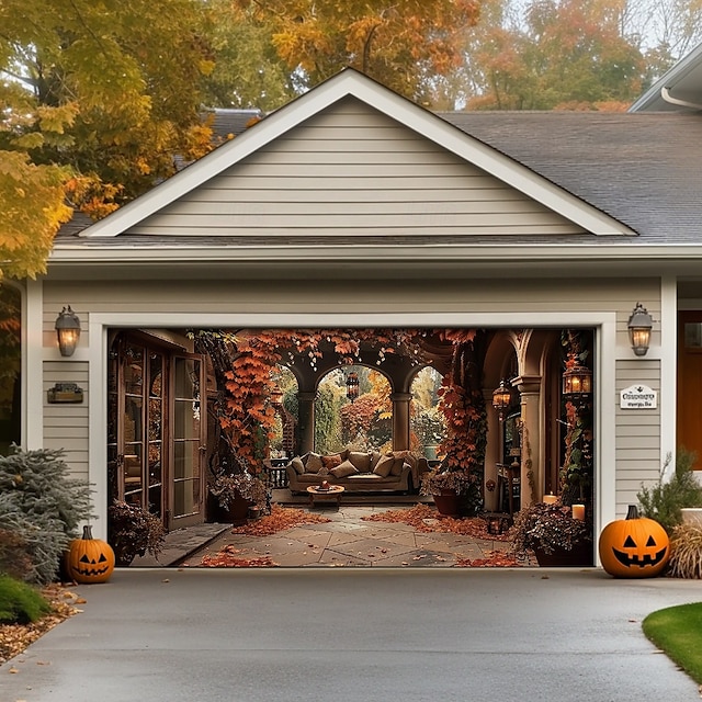Décorations de porte extérieur Couverture de porte de garage Bannière Champ de citrouilles Forêt effrayante Grande Décoration de fond pour les vacances Décorations murales de porte de garage extérieur de 2026 ? $31.99 –P1