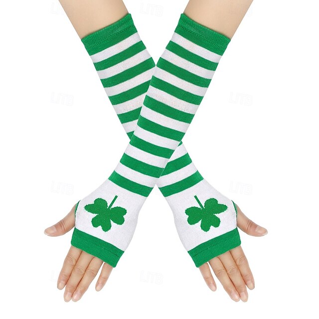Pour: Femmes, Catégorie: Gants, Tissu: Tricot, Style: Fête de la Saint-Patrick, Occasion: Carnaval, Saint-Patrick, Motif: Rayé, Trèfle, Saison: Printemps, Automne, Hiver, Automne & Hiver, Automne,