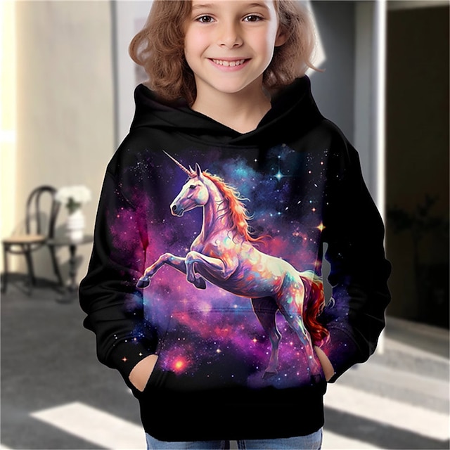 Fille 3D Galaxie Licorne Sweat à capuche Pullover manche longue 3D effet Automne Hiver Actif Mode Le style mignon Enfants 3-12 ans Extérieur Casual du quotidien Standard de 2026 ? $19.99 –P5
