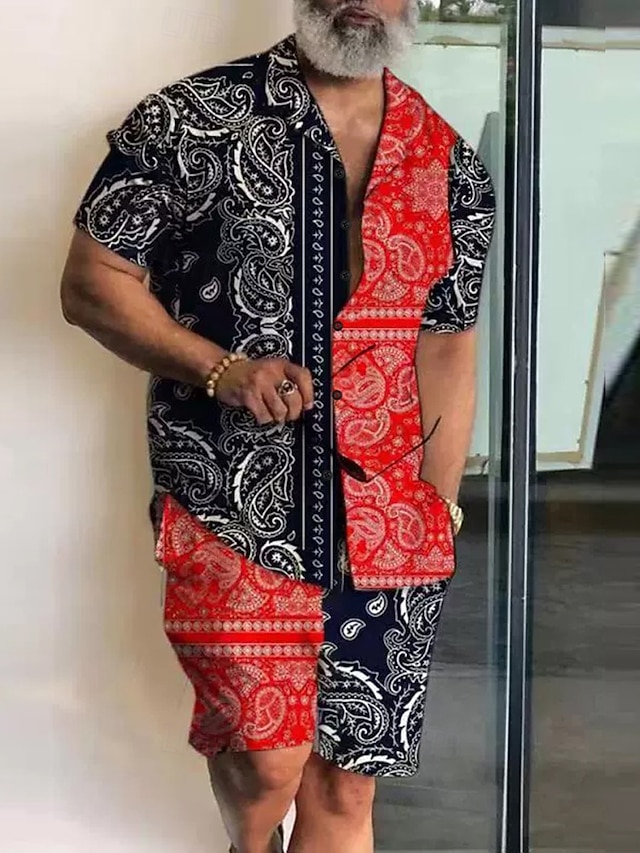 Homme Impression 2 pièces Ensembles de chemises Hauts d'été Manche Courte Pantalon long Pantalon court Col cubain Vacances Décontracté Quotidien Soirée Occasionnel Quotidien Impression 3D Été Vert