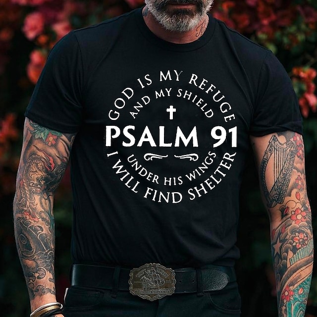 T-shirt graphique pour homme Psaume 91 "Dieu est mon refuge" Écriture chrétienne foi T-shirt à manches courtes
