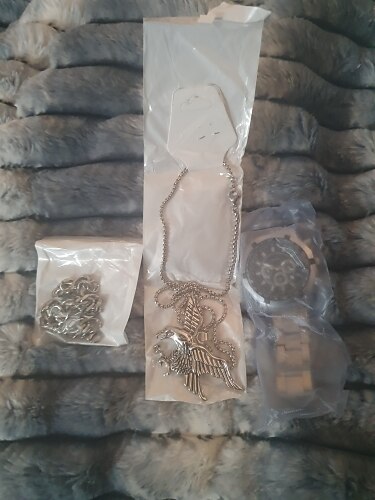 hola, me gusto mucho el relog aunque la pulcera no me quedo, es muy bonita, y el dije de Aguila es muy bonito, la cadena es muy chica y delgada, lo que mas me decepciono, es que no venia en el estuche como en la fotografia, pero son muy buenos productos, y seguire comprando, vale? gracias... hola, me gusto mucho el relog aunque la pulcera no me quedo, es muy bonita, y el dije de Aguila es muy bonito, la cadena es muy chica y delgada, lo que mas me decepciono, es que no venia en el estuche como en la fotografia, pero son muy buenos productos, y seguire comprando, vale? gracias...