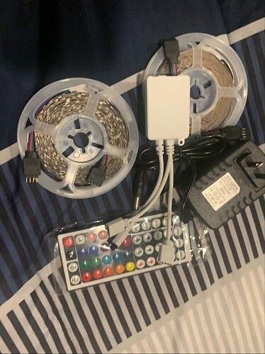 they took about three weeks to get here and half a week to ship, but otherwise i love them!! they’re pretty bright and long, although they only cover half of my room but i’m fine with that. not all colors are solid. make sure to use BOTH plug ins on the white adapter, and make sure to be careful when peeling the adhesive side or you’ll peel the entire back off and it won’t stick. but an adapter box, i bought the one that was suggested!! overall these lights are great!! they took about three weeks to get here and half a week to ship, but otherwise i love them!! they’re pretty bright and long, although they only cover half of my room but i’m fine with that. not all colors are solid. make sure to use BOTH plug ins on the white adapter, and make sure to be careful when peeling the adhesive side or you’ll peel the entire back off and it won’t stick. but an adapter box, i bought the one that was suggested!! overall these lights are great!!