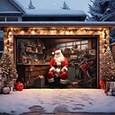 bannière de noël décorations de porte de Noël couverture de porte de garage extérieure rennes traîneau du Père Noël bannière de porte de Noël fête grande porte murale toile de fond décoration |