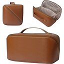 Trousse de maquillage de voyage de grande capacité, organisateur de maquillage en cuir PU à la mode, trousse de toilette portable avec poignée pour le voyage et le rangement |