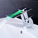 Robinet de salle de bain LED bec cascade 3 changements de couleur avec la température, mitigeur d'évier mono robinets de lavabo, mitigeur monotrou en laiton pour salle de bain robinet monté sur pont |