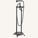 robinet de baignoire monté au sol, style rétro en laiton forme de téléphone finition laiton électrolytique mélangeurs robinet de douche à deux trous avec douchette et drain