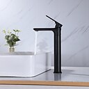 Lavabo de salle de bain grand robinet style robuste poignée unique un trou cuve de bain évier robinet de montage sur pont bassin chaud et froid mitigeur de lavabo robinets de lavabo en laiton noir mat