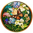 Papillon faux vitrail s'accrochent attrape-soleil, verre de couronne de libellule ronde, décoration de plaque acrylique de couronne de papillon |