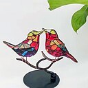 Oiseaux tachés sur les ornements de bureau de branche, décorations d'oiseaux vifs plats en métal sur la branche, cadeau de table de statue d'artisanat de colibri multicolore double face pour les amoureux des oiseaux |