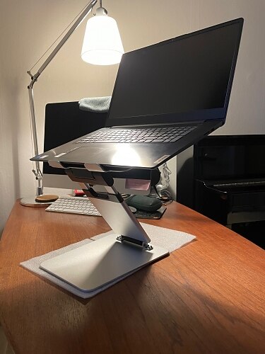 Stativet der ut som på bildene og er solid nok for min 17.3” datamaskin. Stativet der ut som på bildene og er solid nok for min 17.3” datamaskin.