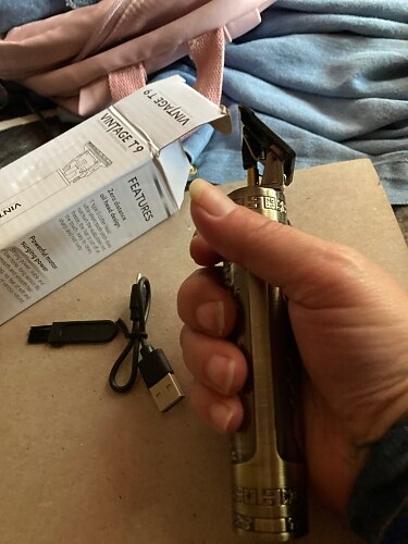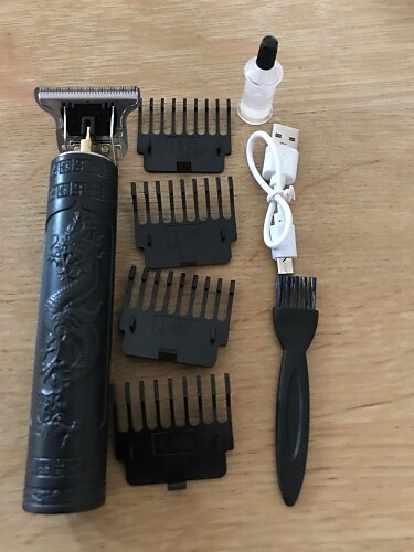 I charged both shavers which already had a little bit of power when I received them. I also tried the 4 different combs and they all fit. It comes with a USB power cord and a tiny hair brush to clean the little trimmed hair out of the blades. Smaller than I had pictured it in my mind but will work for detailing and trimming. I charged both shavers which already had a little bit of power when I received them. I also tried the 4 different combs and they all fit. It comes with a USB power cord and a tiny hair brush to clean the little trimmed hair out of the blades. Smaller than I had pictured it in my mind but will work for detailing and trimming.