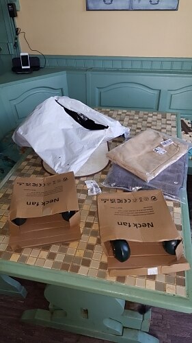 someone had cut open the parcel and opened up the boxes to look look inside, luckely nothing missing, the only reason for 4 stars not 5 is the charging cables with the fans were micro usb and the fan takes a C other than that delighted someone had cut open the parcel and opened up the boxes to look look inside, luckely nothing missing, the only reason for 4 stars not 5 is the charging cables with the fans were micro usb and the fan takes a C other than that delighted