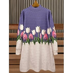 Femmes Mini Robe Robe Pull Robe fourreau Robe trapèze Vacances Fête Occasionnel Maison Occasionnel Quotidien Coupe Ample Graphique Tribal Abstrait manche longue Col roulé Violet Vert Printemps