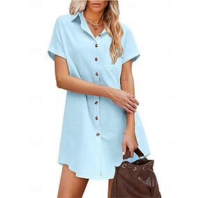robe blanche Robe chemise Femme Mini robe Rendez-vous Vacances Coton et lin basique Moderne Col de Chemise Bouton Poche Manche Courte Eté Printemps Ample Noir Blanche bleu marine Plein S M L XL 2XL