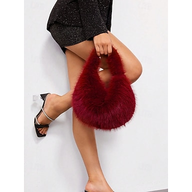 Femmes Sac à main Sacs à Épaule Fausse Fourrure Noël Soirée Occasionnel Fermeture éclair Léger Couleur Unie Amande Noir Rose