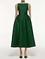 Robes Cocktail A-Line Élégante Robe de Mariage Formelle Longueur Thé Sans Manches Encolure Bateau en Satin avec Plis Poche