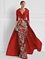 Robe sirène peplum robe de soirée élégante mariage invitée de mariage longueur de sol sans manches col rond satin avec imprimé floral et dentelle brodée