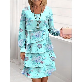 Πάσχα Γυναικεία Φόρεμα μέχρι το γόνατο Καθημερινό φόρεμα Φορέματα σιφόν Φόρεμα ριχτό Φόρεμα με πολλά επίπεδα Κομψό Διακοπές Στυλάτο Κανονικό Φλοράλ Μακρυμάνικο Στρογγυλή Ψηλή Λαιμόκοψη