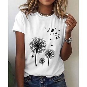 Γυναικεία Μπλούζα 100% Βαμβακερή T-shirt Tee Μαύρο Λευκό Κίτρινο Γραφική Εκτύπωσης Μαργαρίτα Μικρή Μανική Καθημερινά Εξόδου Βασική Στρογγυλή Λαιμό Κανονική Λουλουδάτη