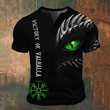 Ανδρικά Γραφική Βίκινγκ Μπλουζάκι Πουκάμισο Henley Κοντομάνικο 3D εκτύπωση Μοντέρνα Κλασσικό Ρετρό / Βίντατζ Υπαίθρια Αθλήματα Αργίες Εξόδου Ανοιξη καλοκαίρι