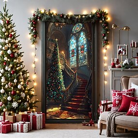 διακοσμητικά χριστουγεννιάτικων πορτών καλύμματα πόρτας Χριστουγεννιάτικη σκάλα ταπετσαρία πόρτας κουρτίνας διακόσμηση σκηνικό πανό πόρτας για εξώπορτα εξώπορτα αγροικίας προμήθειες γιορτινής