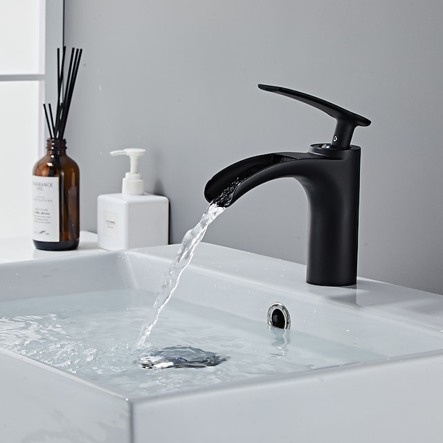βρύση νεροχύτη μπάνιου - καταρράκτη επιμεταλλωμένη κεντρική σετ μονή λαβή βρύσες μπάνιου μιας τρύπας
