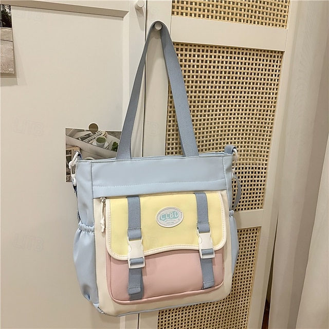 Γυναικεία ασπρόμαυρη τσάντα tote από καμβά – casual σχολική τσάντα ώμου με μπροστινή τσέπη με αγκράφα για έφηβες κοπέλες και φοιτήτριες 2026 - $32.99 –P1