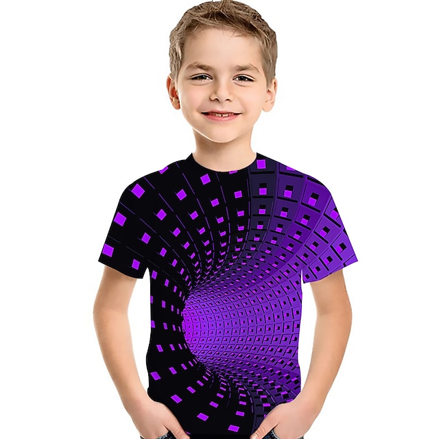 Αγορίστικα 3D Γεωμετρικό Συνδυασμός Χρωμάτων 3D Εκτύπωση Κοντομάνικη μπλούζα Κοντομάνικο Κοντομάνικο 3D εκτύπωση Καλοκαίρι Ενεργό Αθλήματα Κομψό στυλ street Παιδιά Νήπιο