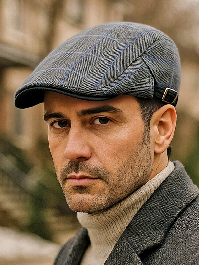 Ανδρικό vintage καπέλο από πολυεστέρα, καρό σχέδιο, διαθέσιμο σε πολλά χρώματα, casual και κομψό καπέλο για το φθινόπωρο και τον χειμώνα 2026 - $12.99 –P1