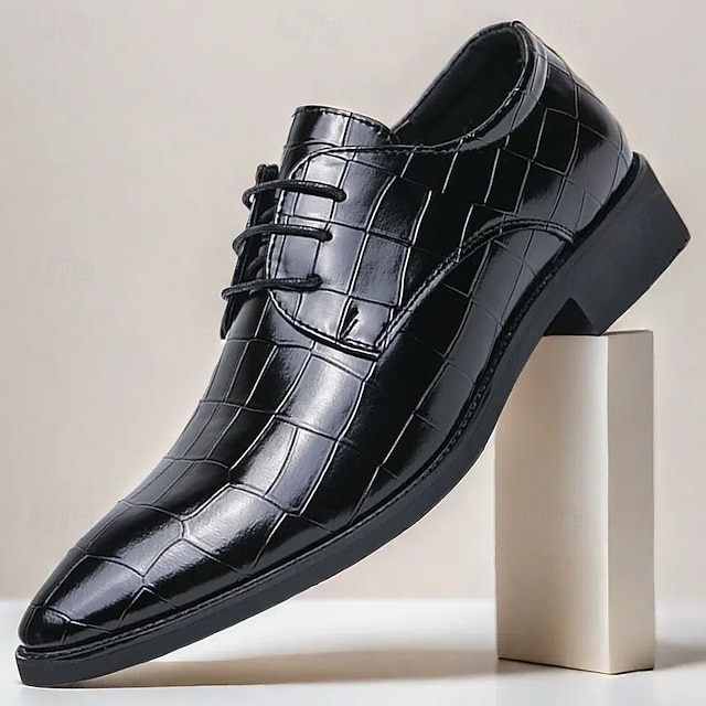 ανδρικά παπούτσια oxford από ψεύτικο δέρμα με σχέδιο κροκόδειλου - κομψά παπούτσια με κορδόνια για επίσημες εκδηλώσεις, επαγγελματικούς λόγους και γάμους 2026 - $49.99 –P1