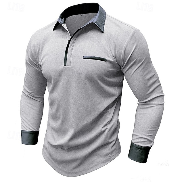 Ανδρικά Πουκάμισο γκολφ γκολφ πόλο Δουλειά Causal Πέτο Μακρυμάνικο Βασικό Μοντέρνα Συνδυασμός Χρωμάτων Κουρελού Κουμπί Άνοιξη & Χειμώνας Κανονικό Κρασί Μαύρο Λευκό Μπλε Ρουά Ουρανί Ανοικτό Γκρίζο