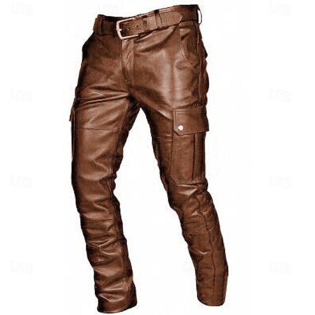 Ανδρικά Παντελόνια Δερμάτινο παντελόνι Casual παντελόνι Πολλαπλή τσέπη Συμπαγές Χρώμα Μοτοσυκλέτα Streetwear Μοντέρνα Μαύρο Ρουμπίνι