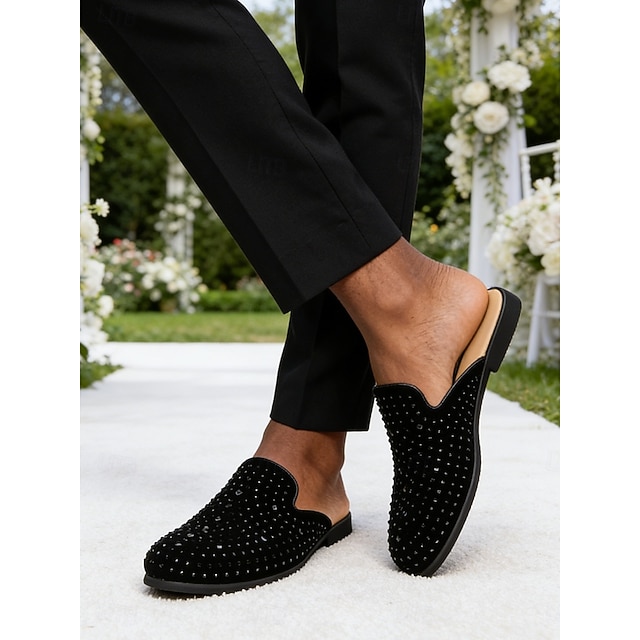Ανδρικά μοκασίνια mule με μπλε σκούρο στρας, λαμπερά slip-on επίσημα παπούτσια, πολυτελή παπούτσια χωρίς πλάτη για γαμπρό, σκηνική παράσταση, γαμήλια δεξίωση, συμπόσιο, χορό, ρούχα για πάρτι 2026 - $49.99 –P6