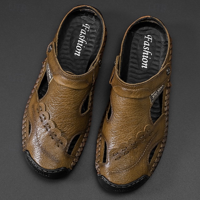 ανδρικά δερμάτινα σανδάλια πράσινου ελιάς με ρυθμιζόμενο λουράκι, διάτρητες λεπτομέρειες και άνετη σόλα – ιδανικά για casual ντύσιμο, υπαίθριες δραστηριότητες και καλοκαιρινές περιπέτειες