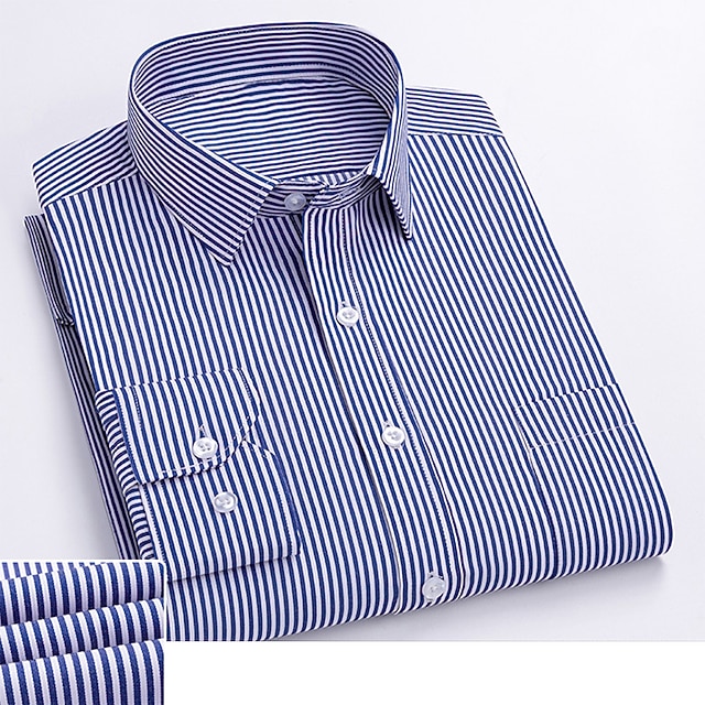 Ανδρικά Πουκάμισο Επίσημο Πουκάμισο Ριγέ πουκάμισο Μη σιδερένιο πουκάμισο Σκέτο Γάμου Γραφείο & Καριέρα Μπλε Απαλό Μπλε Ρουά Μπλε Σκούρο μπλε Μακρυμάνικο Απορρίπτω Άνοιξη & Χειμώνας Ρούχα Στάμπα