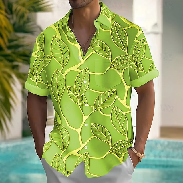 Ανδρικά Φύλλο φοίνικα Τροπικά φυτά Χαβανέζικο πουκάμισο Πουκάμισο με κουμπιά Κοντομάνικο Χαβανέζα Θέρετρο Διακοπές Αργίες Ρούχα παραλίας Καλοκαίρι Άνοιξη Απορρίπτω γιακά πουκάμισα Μπροστινή μία τσέπη