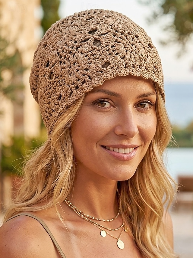 Γυναικείο καπέλο σκούφο με κροσέ σε boho μοτίβο, πλεκτό καπέλο από μείγμα βαμβακιού σε πολλά χρώματα για καθημερινή χρήση, ταξίδια, διακοπές και στυλ σε παραθαλάσσιο θέρετρο 2026 - $16.99 –P1