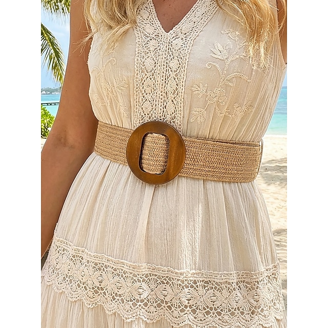 Γυναικεία ζώνη μέσης μποέμ υφαντή με vintage ξύλινη αγκράφα, ζώνη από ψάθινο πλέγμα για καλοκαιρινές διακοπές στην παραλία και καθημερινή casual ένδυση, διαθέσιμη σε πολλά χρώματα 2026 - $9.99 –P3