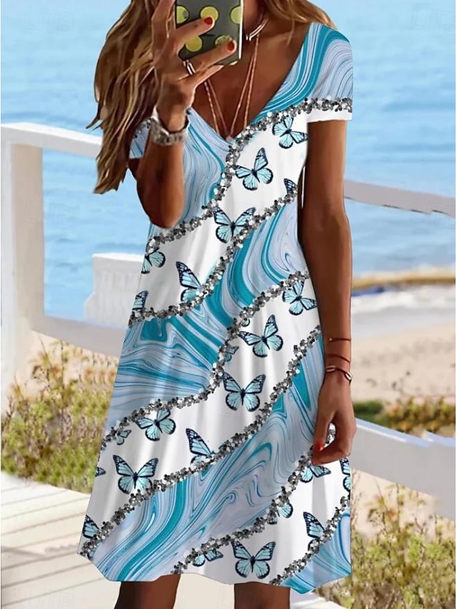 Γυναικεία Μίνι φόρεμα Καθημερινό φόρεμα Κομψό Τροπικό Χαβανέζα Καθημερινά Κανονικό Φλοράλ Κοντομάνικο Στρογγυλή Ψηλή Λαιμόκοψη Θαλασσί Μωβ Λευκό Ανθισμένο Ροζ Καλοκαίρι