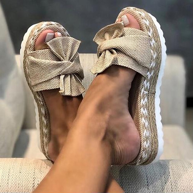 Φύλο: Γυναικεία, Υλικά: Πανί, Σχήμα Ποδιού: Ανοικτή μύτη, Τύπος Κουμπώματος: Μοκασίνια, Τύπος Τακουνιού: Επίπεδο Τακούνι, Πλατφόρμα, Διακόσμηση: Φιόγκος, Στυλ: Καθημερινό, Περίσταση: Καθημερινά, ΕΞΩΤΕΡΙΚΟΥ ΧΩΡΟΥ, Παραλία, Σπίτι, Εποχή: Καλοκαίρι, Κατηγορία: Παντόφλες, Μοτίβο: Μονόχρωμο,