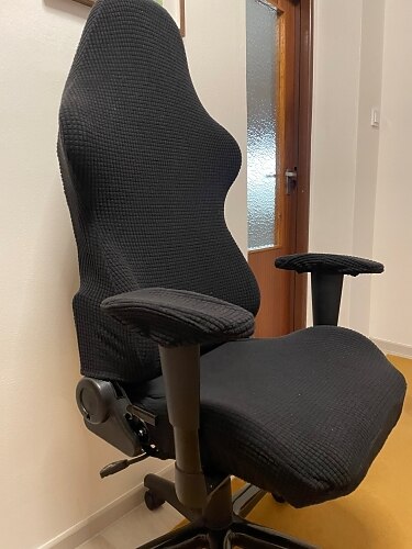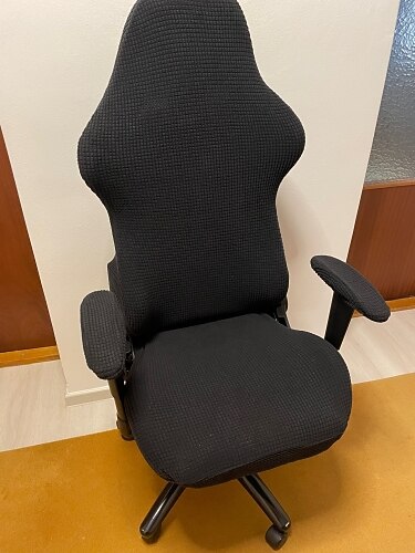 My chair cover arrived just as described and was very easy to install. So far I have no complaints. My chair cover arrived just as described and was very easy to install. So far I have no complaints.